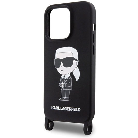 Karl Lagerfeld Crossbody Handy Hülle Case Liquid Silikon Ikonik Karl für iPhone 15 Pro Schwarz