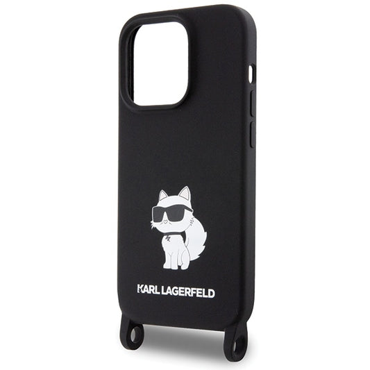 Karl Lagerfeld Crossbody Handy Hülle Case Silikon Choupette für iPhone 15 Pro Schwarz