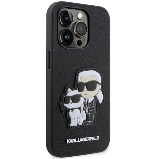 Karl Lagerfeld Handy Hülle Case Saffiano 3D Karl & Choupette für iPhone 14 Pro Max Schwarz