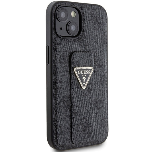 GUESS Handy Hülle Case für iPhone 13 / 14 / 15 4G Dreieck Strass Logo mit Griff Stand Schwarz
