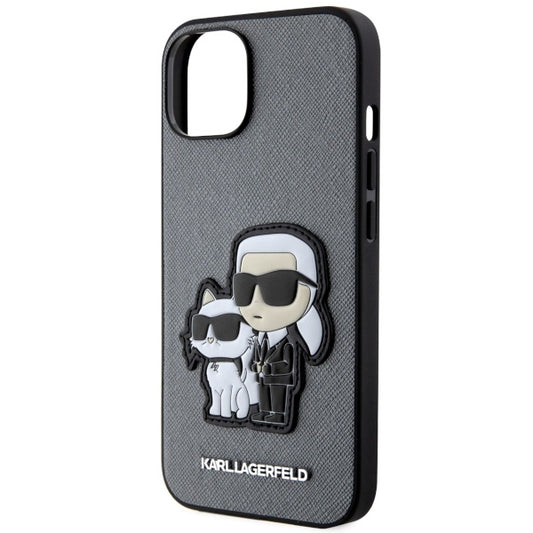 Karl Lagerfeld Handy Hülle Case Saffiano 3D Karl & Choupette für iPhone 13 / 14 / 15 Silber