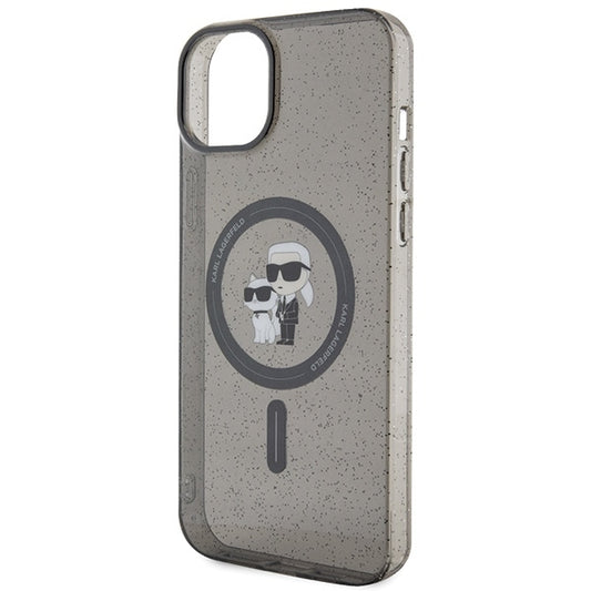 Karl Lagerfeld Magsafe Handy Hülle Case für iPhone 13 / 14 / 15 Glitzer Schwarz