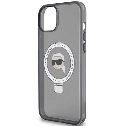 Karl Lagerfeld Magsafe Handy Hülle Case für iPhone 13 / 14 / 15 mit Ring Stand Schwarz