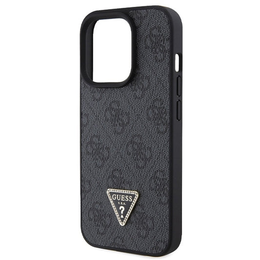 GUESS Handy Hülle Case Leather 4G Diamond Triangle für iPhone 15 Pro Schwarz