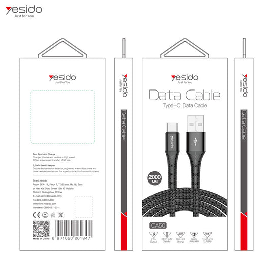 YESIDO CA50 Typ C auf USB 2 Meter Ladekabel