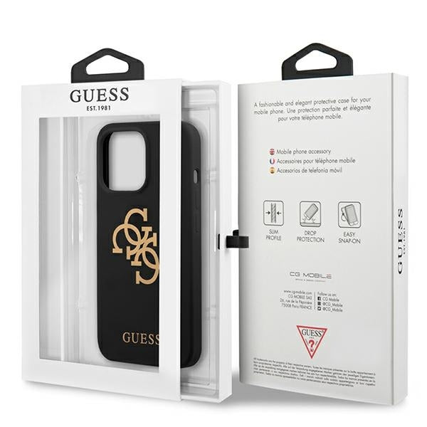 GUESS Handy Hülle Case Silikon 4G Logo für iPhone 13 Pro Schwarz
