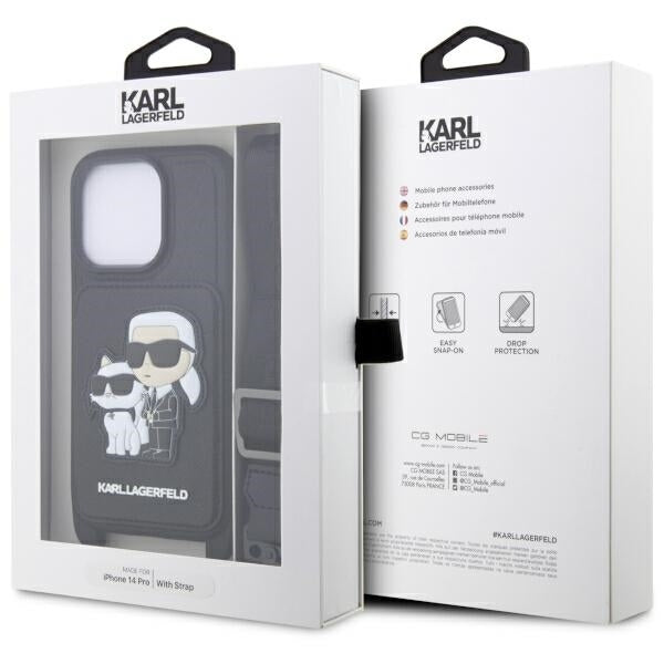 Karl Lagerfeld Crossbody Handy Hülle Case Saffiano Karl & Choupette für iPhone 14 Pro Schwarz
