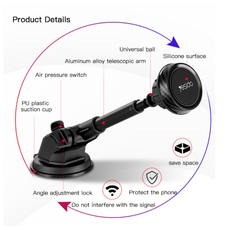 Die YESIDO C67 Magnet Halterung mit Saugnapf ist eine durchdachte und benutzerfreundliche Lösung für die sichere Befestigung Ihres Smartphones im Auto. Hier sind die Hauptmerkmale und Vorteile dieser Halterung: